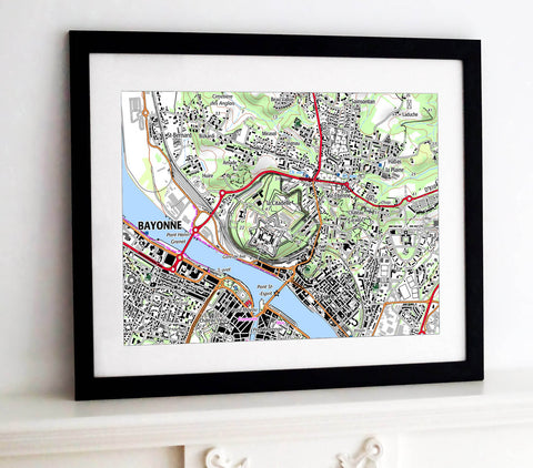 Framed Prints France 1:25,000 scale mapping Postcode centred
